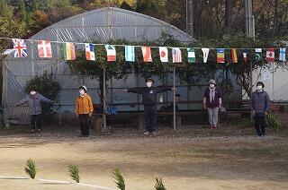 ラジオ体操。子どもたちはもちろん、おじいちゃん、おばあちゃん、地域の方々もみんなで!