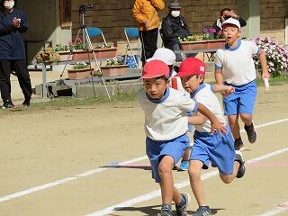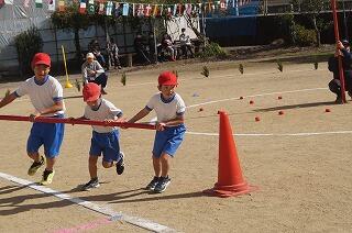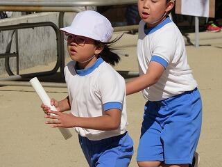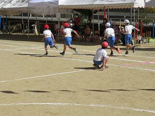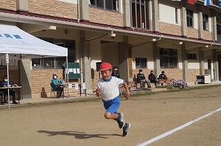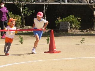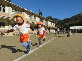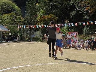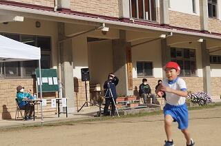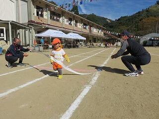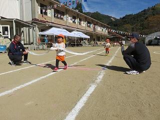 保育所生のかけっこ。元気に駆け抜けました。特別に力強い走りをする保育所生?もいました。