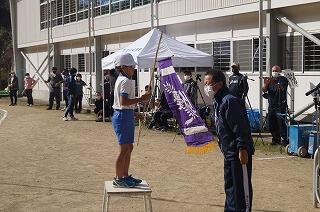 閉会式。小学校生活最後の運動会となる6年生があいさつをしました。たった1人の6年生として、運動会を含め、すべての行事で全校のみんなを引っ張っています。