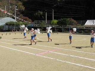 開会式後はエール交換。そして、応援。陽の届き始めた運動場で躍動します。