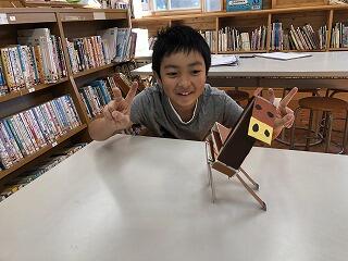 よーく読んで定規で正しく長さをはかったので、おもちゃがきちんと完成しました。首の動きがユーモラスで楽しいおもちゃです。