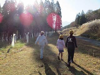 まずは、アップも兼ねてクロスカントリーコースを歩きます。標高960mのほんのり冷たい空気と朝日の木漏れ日が気持ちいい!