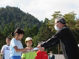 閉会式では、全員が教育長から記録賞を渡してもらいました。