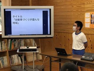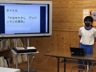 タブレットを使って、分かりやすく発表しました。クイズを入れたり、自分の意見を述べたりと、さすがに5・6学年らしい発表でした。