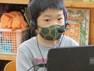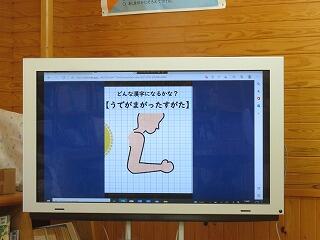 目玉を動かす体操をしたり、目を大切にするための自分の目標を発表したりしました。目標をタブレットにあっという間に打ち込んで、テレビに映し出して発表していました。タイピングのスピードが速いです。