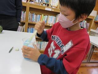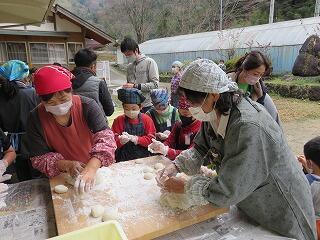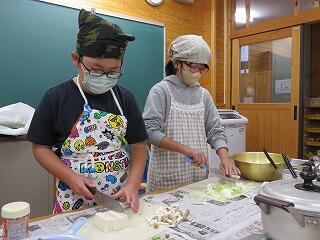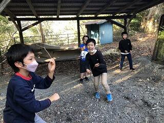 いっそう寒さを感じる風景ですが、ファンヒーターの効いた教室の中は暖かです。1・2年生は粘土遊びをしていました。