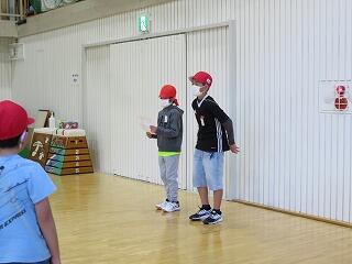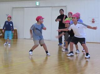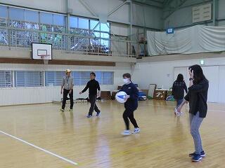 新しいスポーツで、子どもたちはまだ慣れていません。「1回は両手でキャッチしてもよい」という特別ルールでやっていました。強いアタックが決まったり、ぎりぎりでボールに手が届いたりと白熱したゲームになっていました。