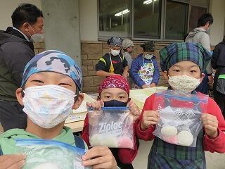 先生たちが思いつかない作業も見つけます。子どもたちの発想は豊かです。