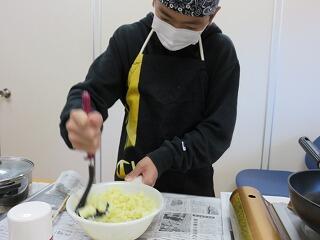 ラーメンの麺をつくっています。今日は食べ物テーマでいくそうです。