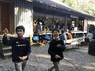 「そっちの材料も見せてね。」と言ったら、駆け寄ってきて、笹とウラジロをカメラに押しつけてきました。なかなかヤンチャです。