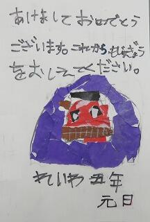 子どもたちから、学校の先生たちに、ちぎり絵の年賀状が届いていました。