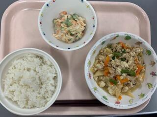 わかめごはん れんこんのマヨネーズ和え 厚揚げのそぼろ煮
