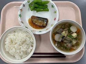 さんまは旬の魚です。脂がのっていて、みぞれ煮の味も丁度良くご飯の進むおかずでした。枝豆もプリっとしていておいしかったです。根菜汁はごぼうや里芋などがたっぷり入っていて、食べ応えがありました。寒い日だったので、体がほっこり温まりました。