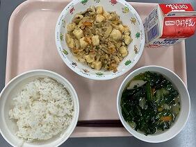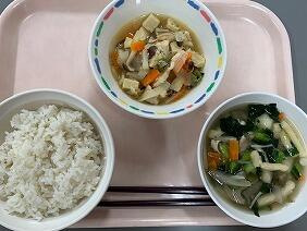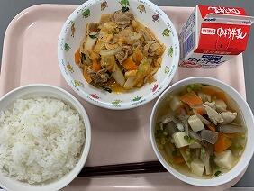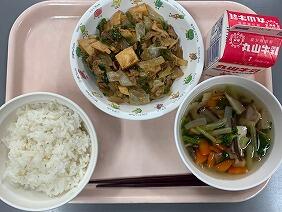 今日は中華のメニューでした。回鍋肉はたけのこやキャベツ、ピーマンなど様々な具材が入っていて、シャキシャキしておいしかったです。テンメンジャンのコクもバッチリでした。中華スープは出汁がしっかり出ていて、スープで体が温まりました。具の一つのこんにゃく寒天は、ひそかな人気食材です。給食をしっかり食べて、明日の運動会に元気に臨みます!