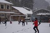 今日の雪も、パウダースノーでした。子どもたちは、登校後すぐに雪合戦を始め、雪