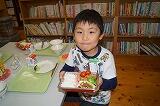 出来上がったお弁当をみんなでおいしく食べました。今日の給食は、特別だったという