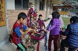27日(金)は、恒例のクリスマスツリーを全員で飾り付けました。子どもたちにとっては