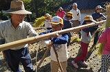 子どもたちは、田植えや稲刈りの経験はありましたが、脱穀は初めてです。脱穀の