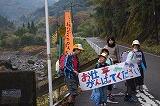 子どもたちは、学校前の本郷橋のところに立ち、行き交う自動車の運転手さんに向けて