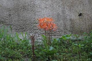 7日(金)の朝、校舎の裏側に、彼岸花が咲いていた。この暑い盛りにもう彼岸花が