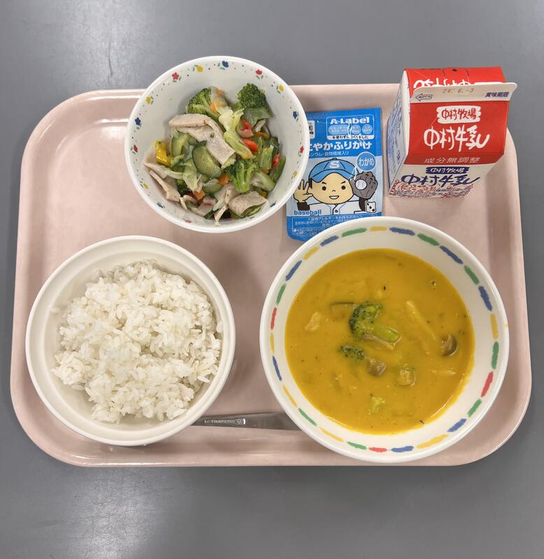 今日は大雨で、気分が少し下がり気味でしたが、美味しい給食のおかげで、気持ちが晴れやかになりました。