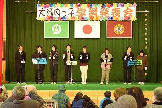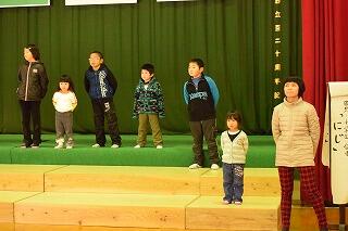 「大河内小学校の校歌」を会場の全員で大合唱して今年の「大河内っ子学習発表会」を閉幕
