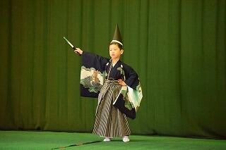 プログラム12番は、保育所年長のSくんの登場です。袴姿が立派な踊り「元服の朝」になり