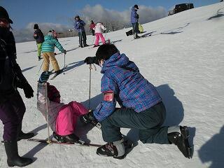 到着後は、記念撮影を行い、ゲレンデへ。慣れている上学年生は、早速練習してから滑り