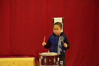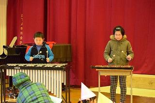 プログラム2番は、全校児童による合奏「ドラえもんのうた」です。今朝は-4℃まで冷えた