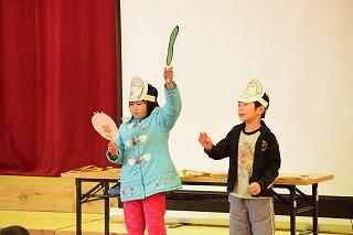 プログラム11番は、子どもたちによる「三代目桃太郎」の劇です。この1か月間、子どもたち