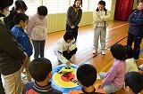 隣接する保育所の子どもです。体育館でのゲームで楽しく交流していました。この日は、ご