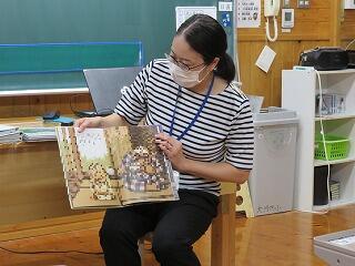 7月のある日、1・2年生が、保育所生を招いて読み聞かせをしました。