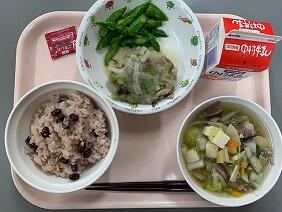 今日は今年度最後の給食でした。赤飯はごま