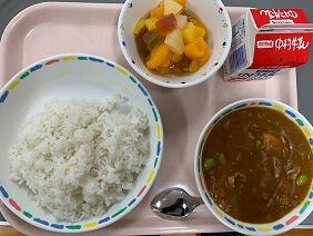 今年度最初の給食はハヤシライスでした。ルー