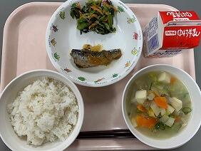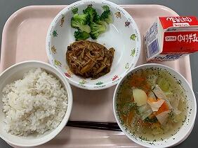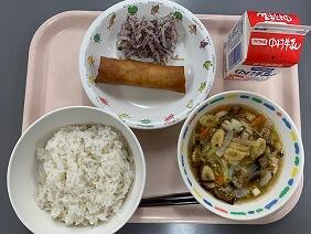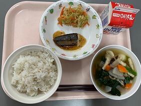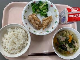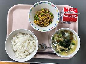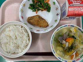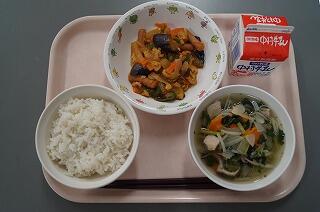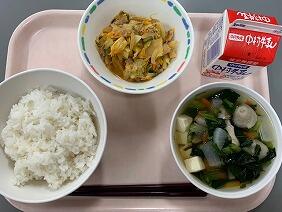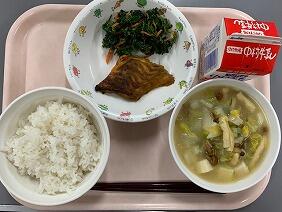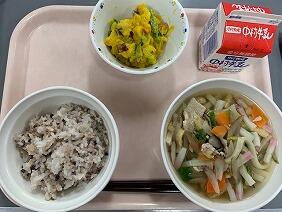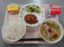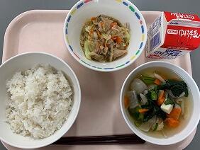 麦ごはん 豚肉のしょうが炒め とうきび汁