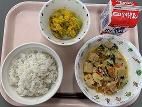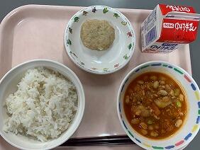 揚げパン 青豆サラダ 鶏肉のトマト煮