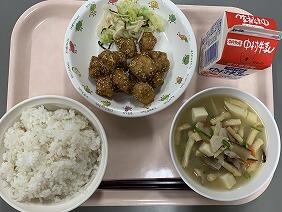 麦ごはん ごま和え いわしのみぞれ煮 さつま汁