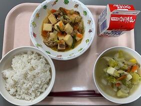 麦ごはん 元気サラダ 高野豆腐と厚揚げの煮物