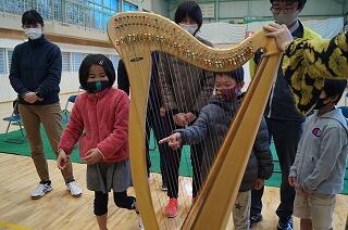 楽器を実際に触らせてもらいました。子どもたちも大喜び