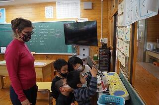 友だちに伝える活動です。表現力育成をねらっています。