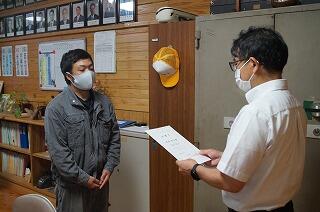 4名の学校評議員の方に委嘱状を交付し、本年度の学校経営等に