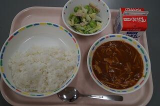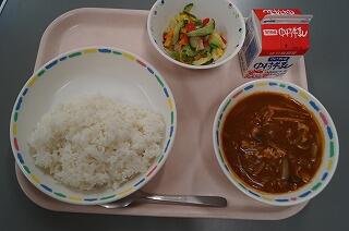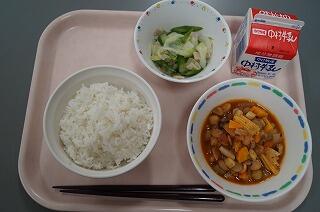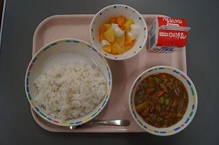 ポークカレーとフルーツ杏仁、子どもたちが大好きなメニュー