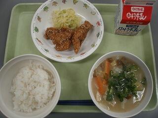 きつね丼は、給食で初めて登場したメニューです。油揚げに味がしみこんでいておいしかったです。今日もみんなもりもり食べて、残さいゼロです。