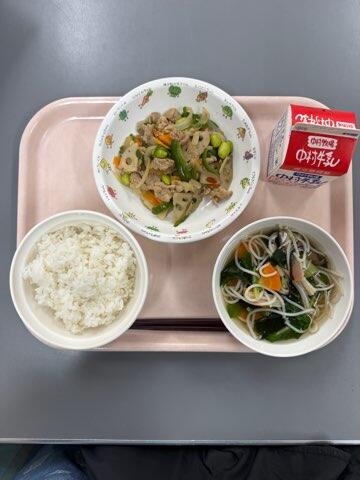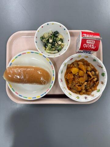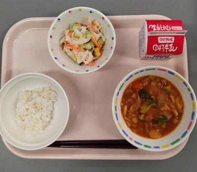 鶏肉とトマトの酸味がマッチしていました。また、じゃがいもとミックスビーンズもトマトとの相性がいいですね!レンコンのマヨネーズ和えは、しっかり噛むことでレンコンのおいしさがしっかりと感じられました。毎日の給食に感謝です。