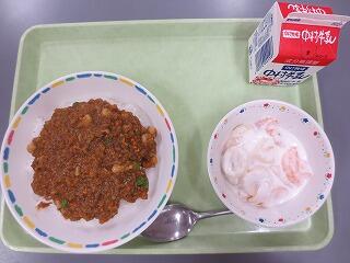 麦ご飯 ・ ドライカレー ・ フルーツヨーグルト