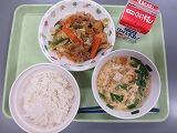 野菜たっぷりの給食でした。ピーマンが苦手な子も