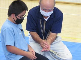 交流活動の内容は「わらない(藁ない)」です。「縄ない」とも言います。