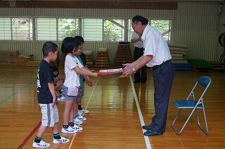 今回は、スポーツテストでの体力賞(A判定)で、1年生のKくん、2年生のYくん、5年生のTくんとJさんが表彰されました。