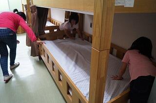 施設に戻ったら、宿泊の準備です。(女子チーム順調、順調)