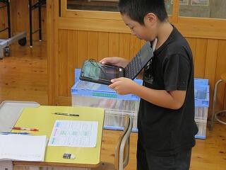 1~4年生は手書きしたものを写真に撮る。5・6年生になると、タイピングしてタブレットパソコンに直接書き込む。だんだんと成長していく様子がよく分かりました。